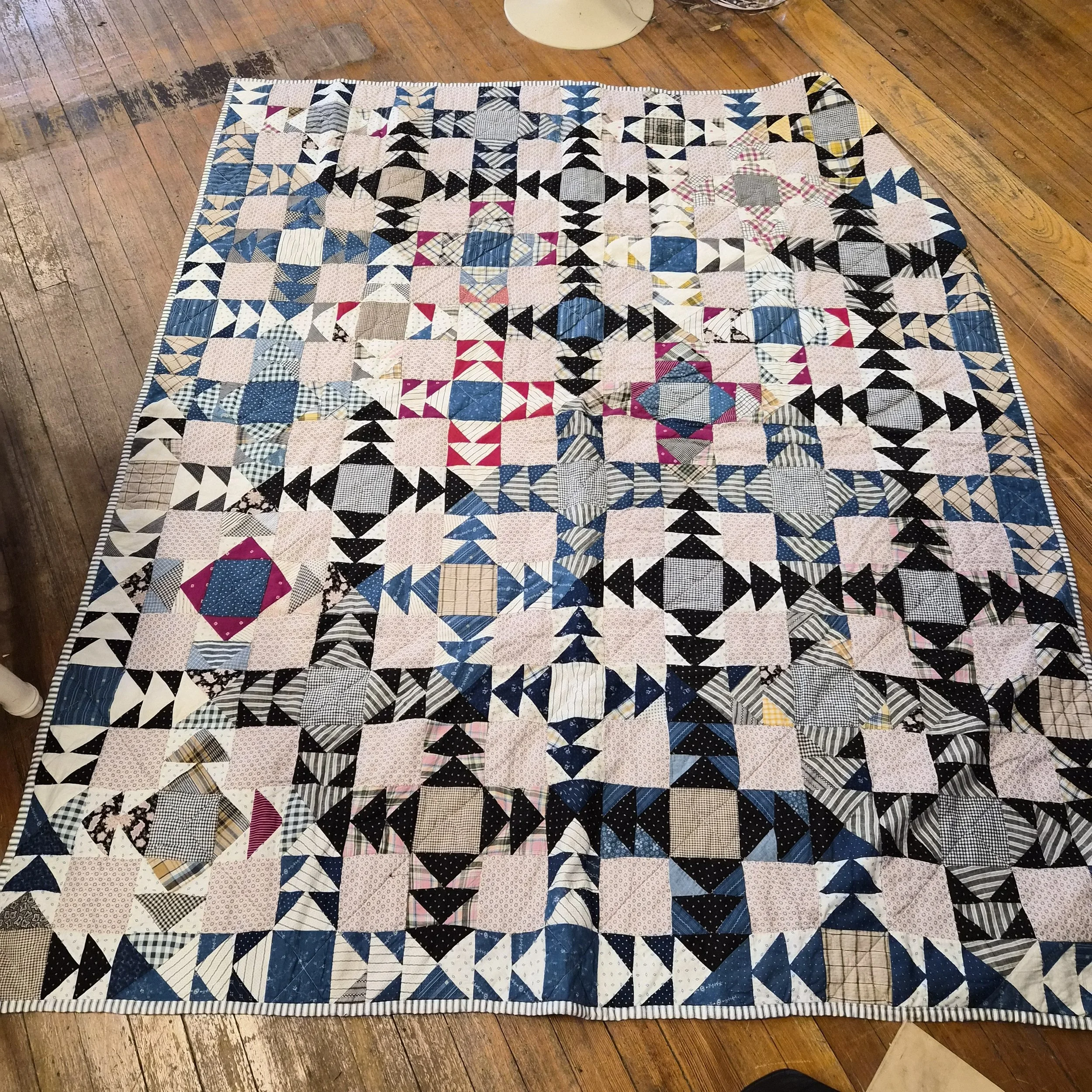Traditional fabric quilt, which is often the inspiration for a form of folk art known as a barn quilt. Barn quilts are large, painted wooden panels featuring quilt patterns, typically displayed on the exterior of barns or other buildings.